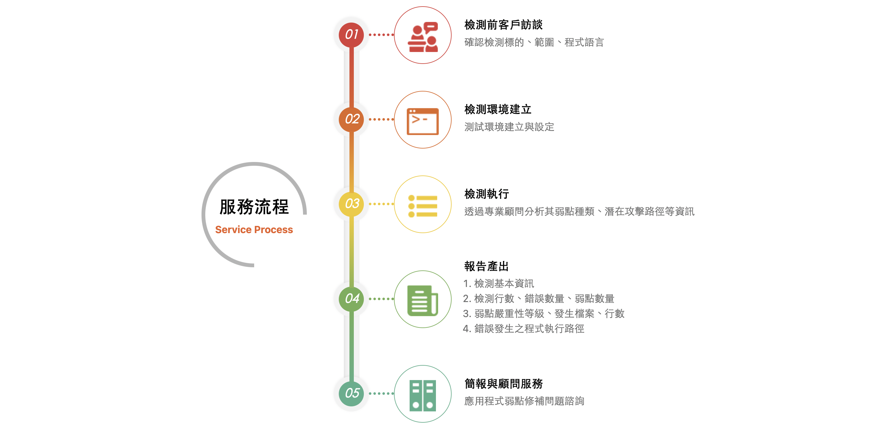 客製化修補建議 源碼檢測可依不同程式語言提供具體修補方案,專業團隊詳細說明每個弱點的錯誤樣態與對應程式碼範例,兼顧安全與實務可行性,協助快速修復